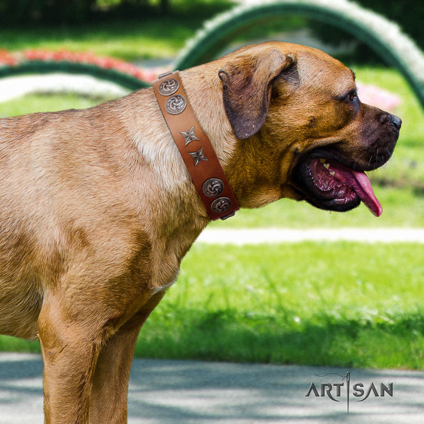 Cane Corso leather collar with corrosion proof hardware for everyday walking