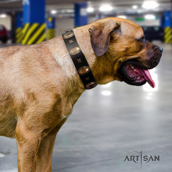 Cane Corso natural genuine leather dog collar with rust-proof decorations