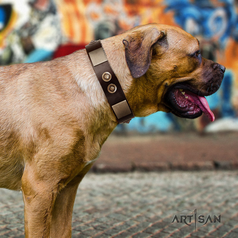 Cane Corso embellished full grain natural leather dog collar for easy wearing