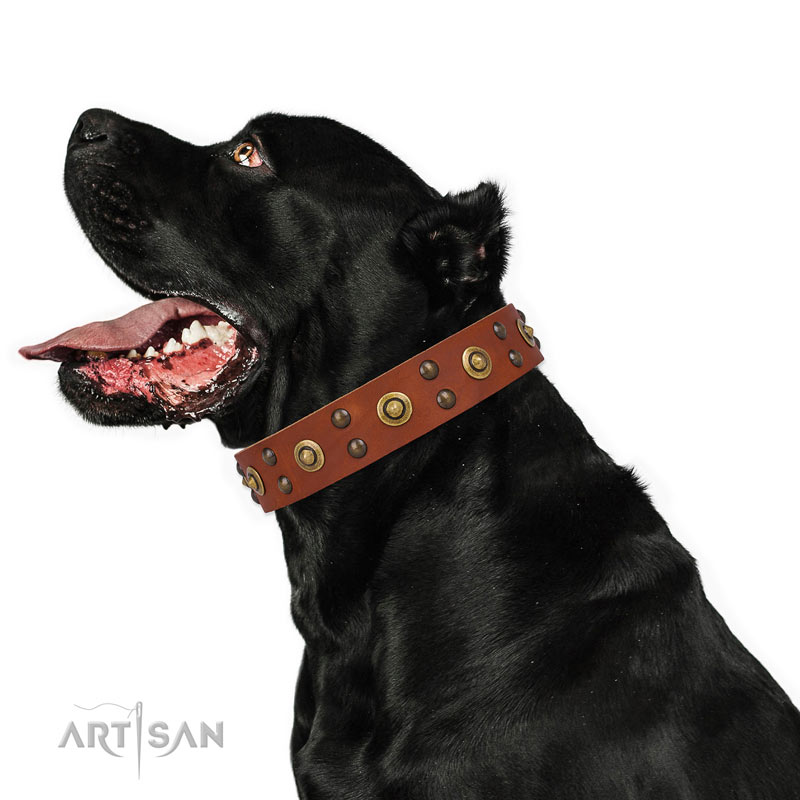 Corrosion proof fittings on exquisite genuine leather dog collar