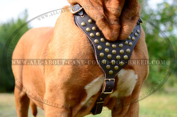 Everyday safety walking Dogue de Bordeaux breed studded harness