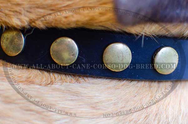 Do you want to have Universal Collar that may be used both for training and walking? We would like to offer you Multipurpose Leather Collar that has one more advantage. It is exclusively decorated with brass circles that will single out your Cane Corso among other representatives of this breed.