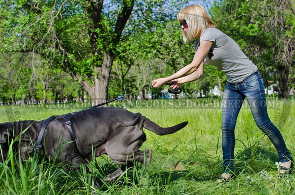 Your lovely Mastiff is a true friend of yours – he is certain to protect you in different situations – all you need to do is to teach him to behave correctly and not to kill as much enemies as possible. ) Trying to protect you your Neapolitan Mastiff can miscalculate his power and make a mess. You should regularly train your Molosser dog and his training sessions must be hard but encouraging at the same time. Do not forget to praise your dog for his work no matter how it is done. Using our Designer Leather Dog Harness you already do your dog good: