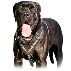 • Unique Barbwire Painted Leather Dog Harness for Cane Corso Breed